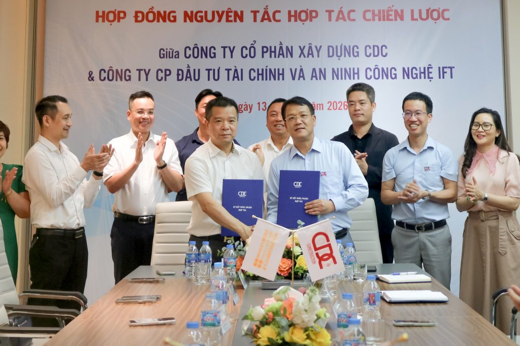 Chiều ngày 13/4/2026, tại trụ sở CDC, Công ty Cổ phần Xây dựng CDC và Công ty Cổ phần Đầu tư Tài chính & An ninh Công nghệ IFT chính thức ký kết Hợp đồng nguyên tắc thỏa thuận hợp tác chiến lược, đánh dấu mối quan hệ hợp tác tốt đẹp giữa hai doanh nghiệp trong lĩnh vực đầu tư và thi công các dự án xây dựng dân dụng, công nghiệp.