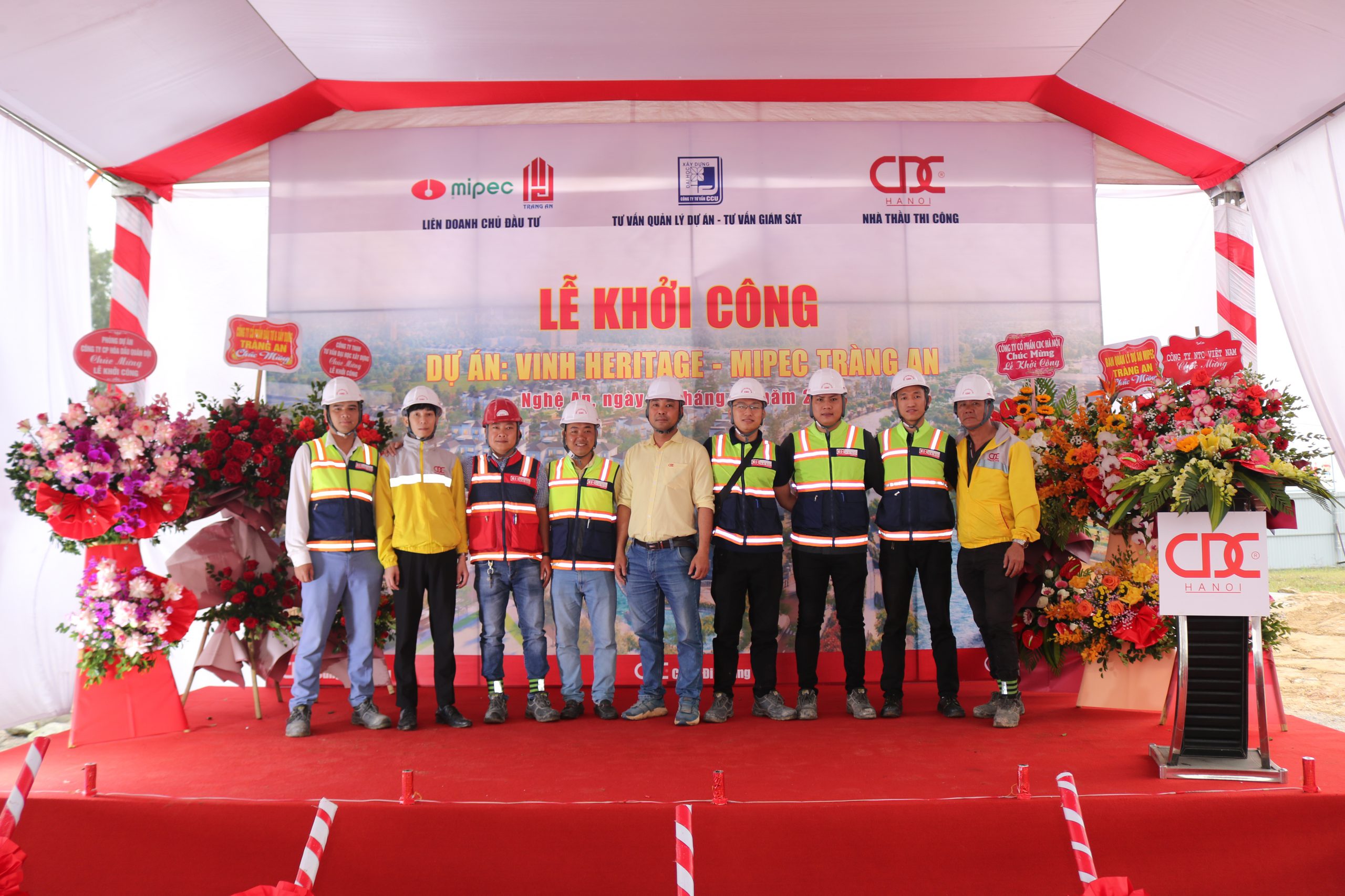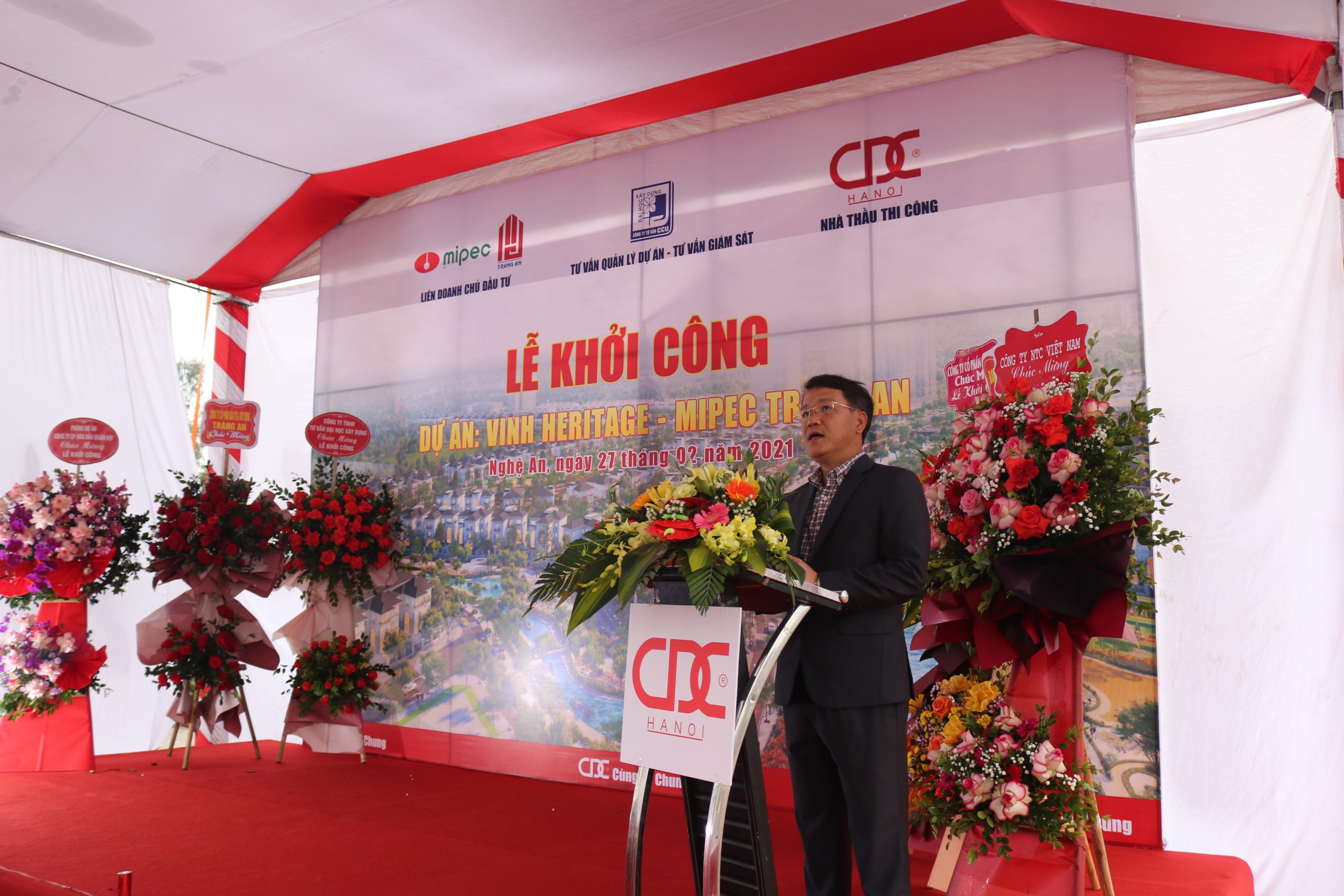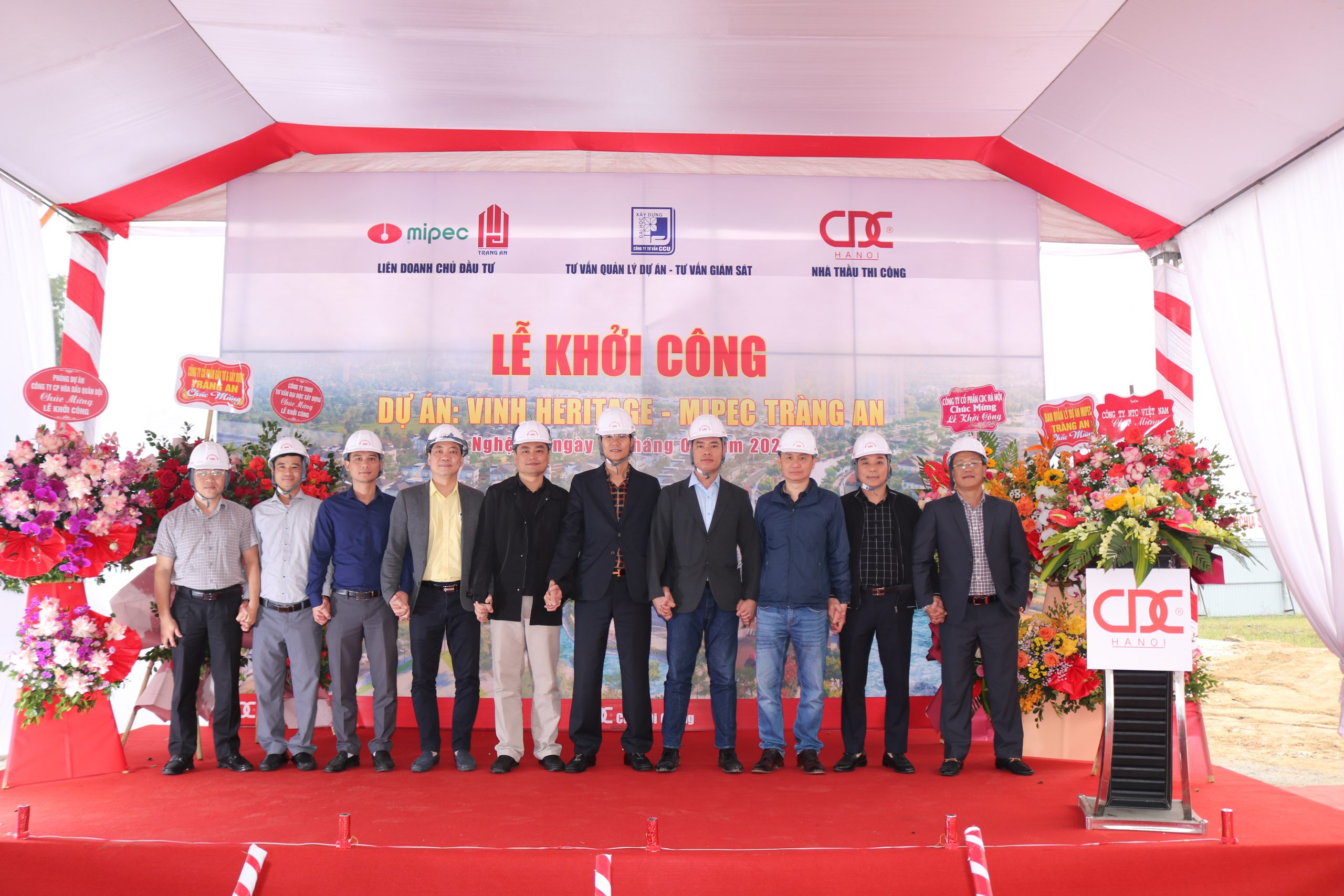 On February 27, 2021, CDC Ha Noi Joint Stock Company successfully organized the groundbreaking ceremony for the “Vinh Heritage” project in Vinh Tan Ward, Vinh City, Nghe An Province. The ceremony was honored to welcome representatives from the investors, Mipec and Trang An, supervisory consultants, project management consultants, and CDC Ha Noi, along with key partners involved in the project